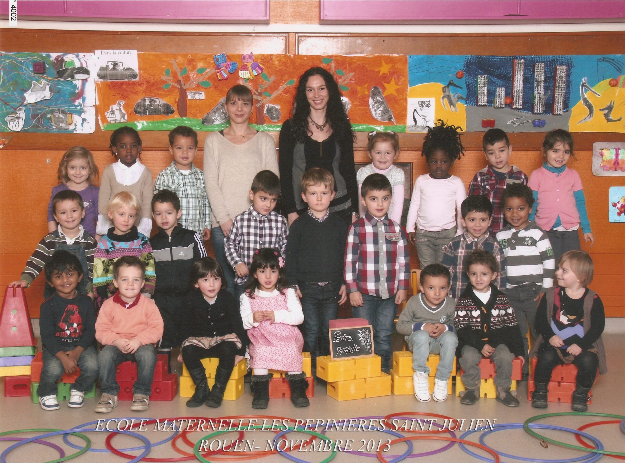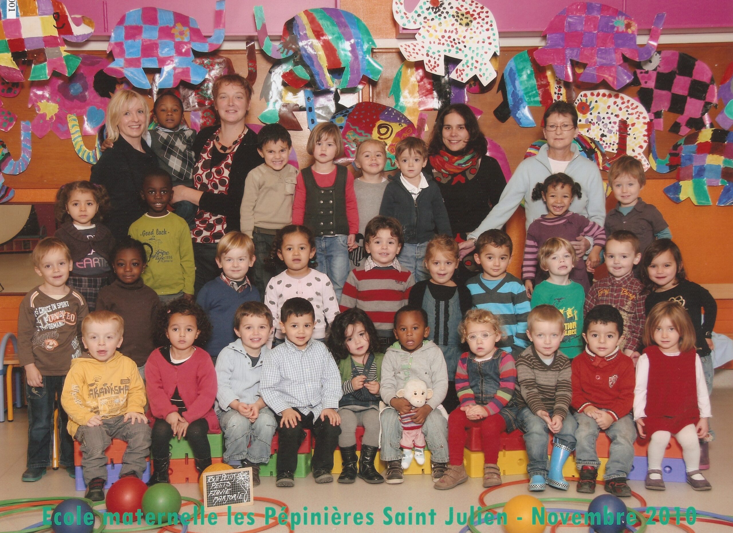 Petite section Ecole maternelle Pépinières Saint-Julien 2013/2014. Enseignante: Nathalie Caillaud (la grande brune) – ATSEM: Sabrina …