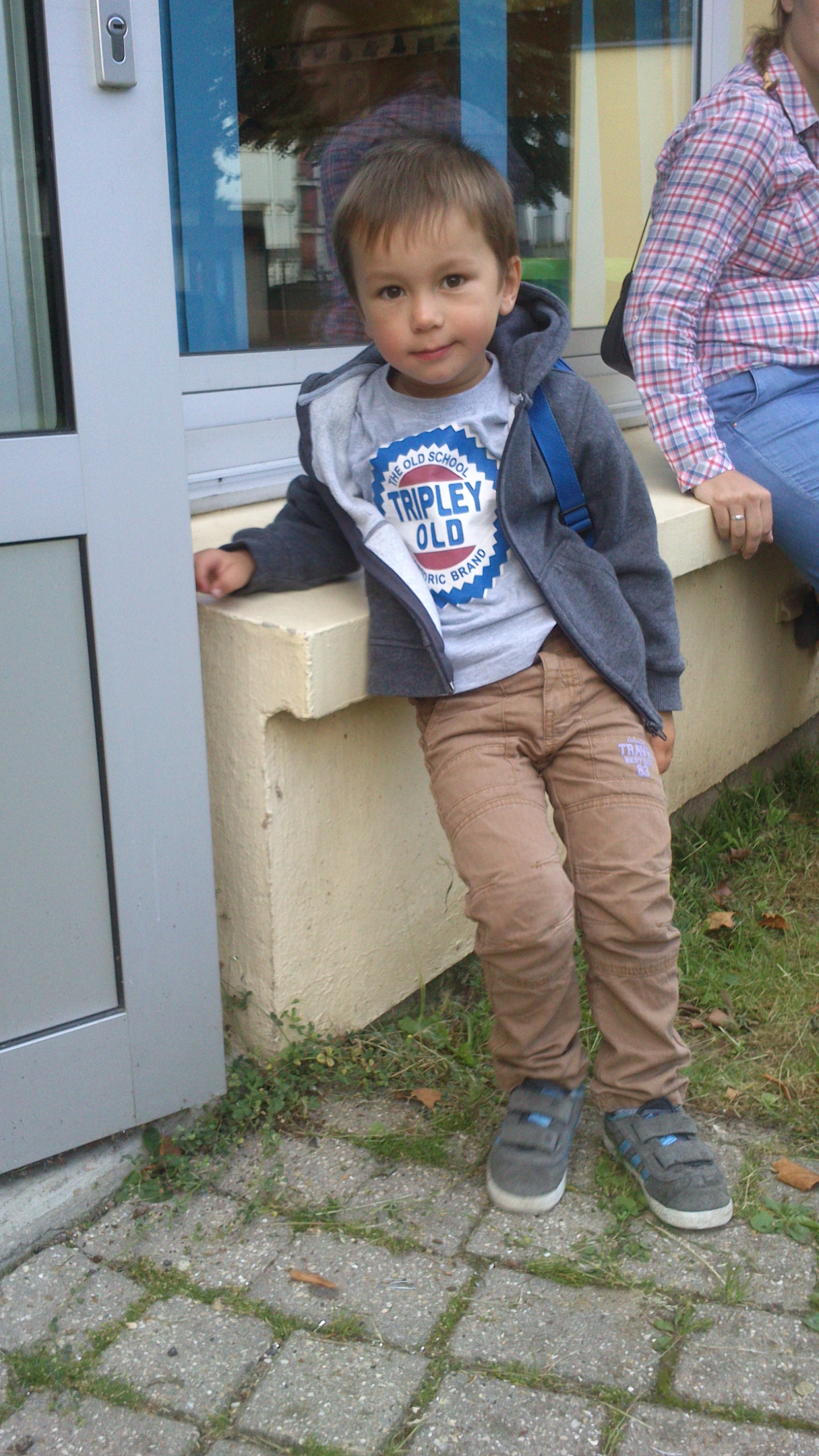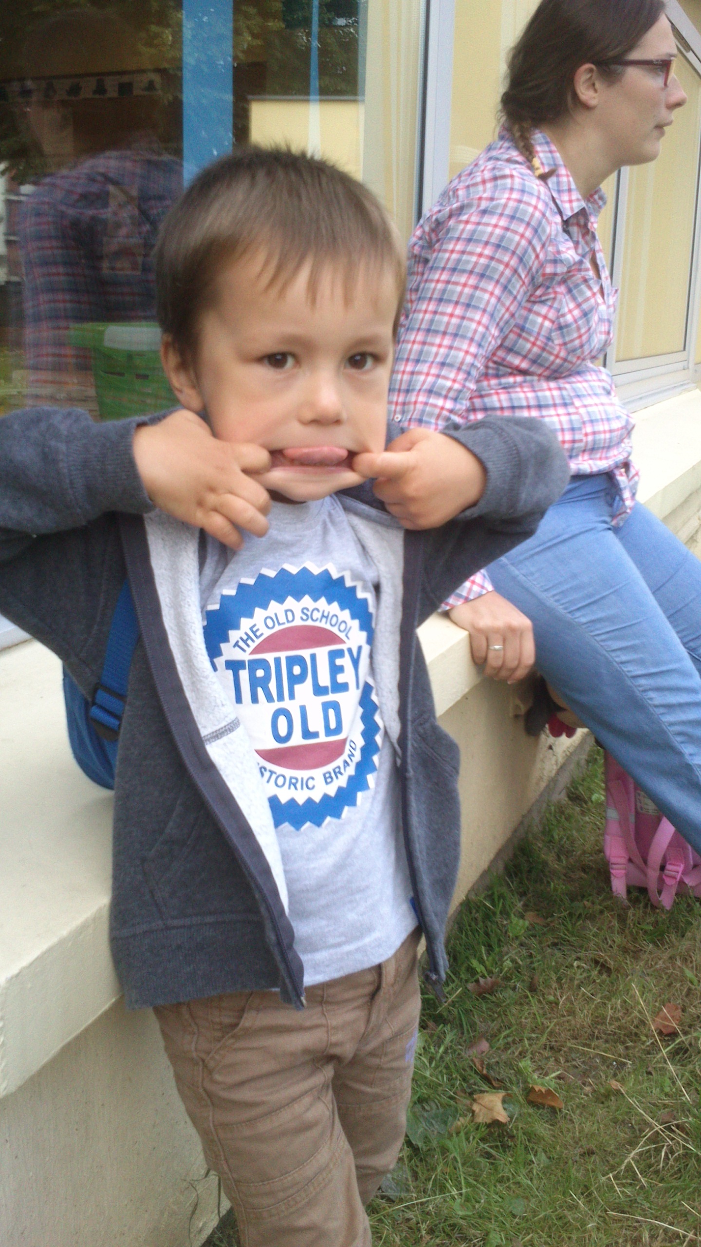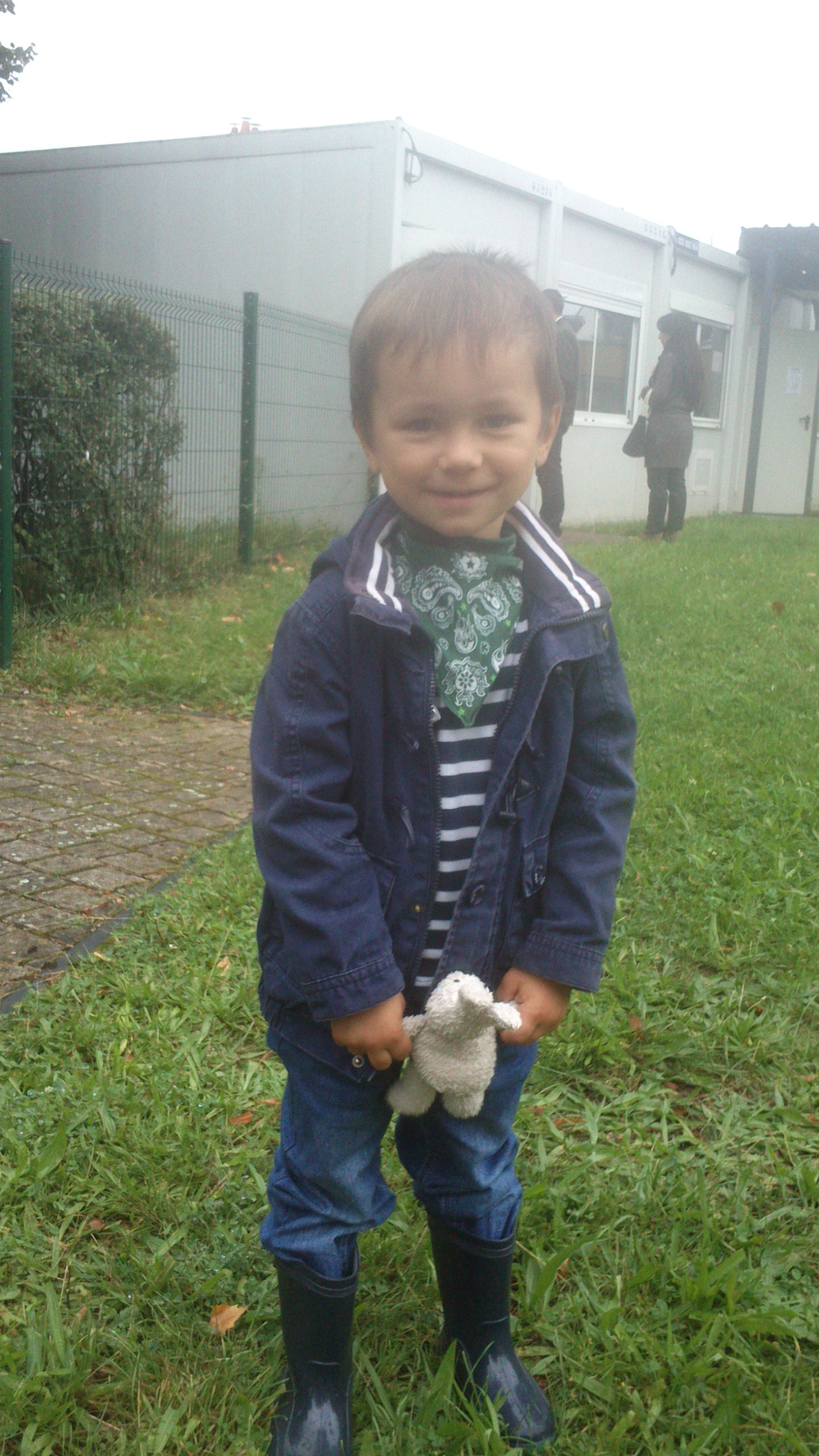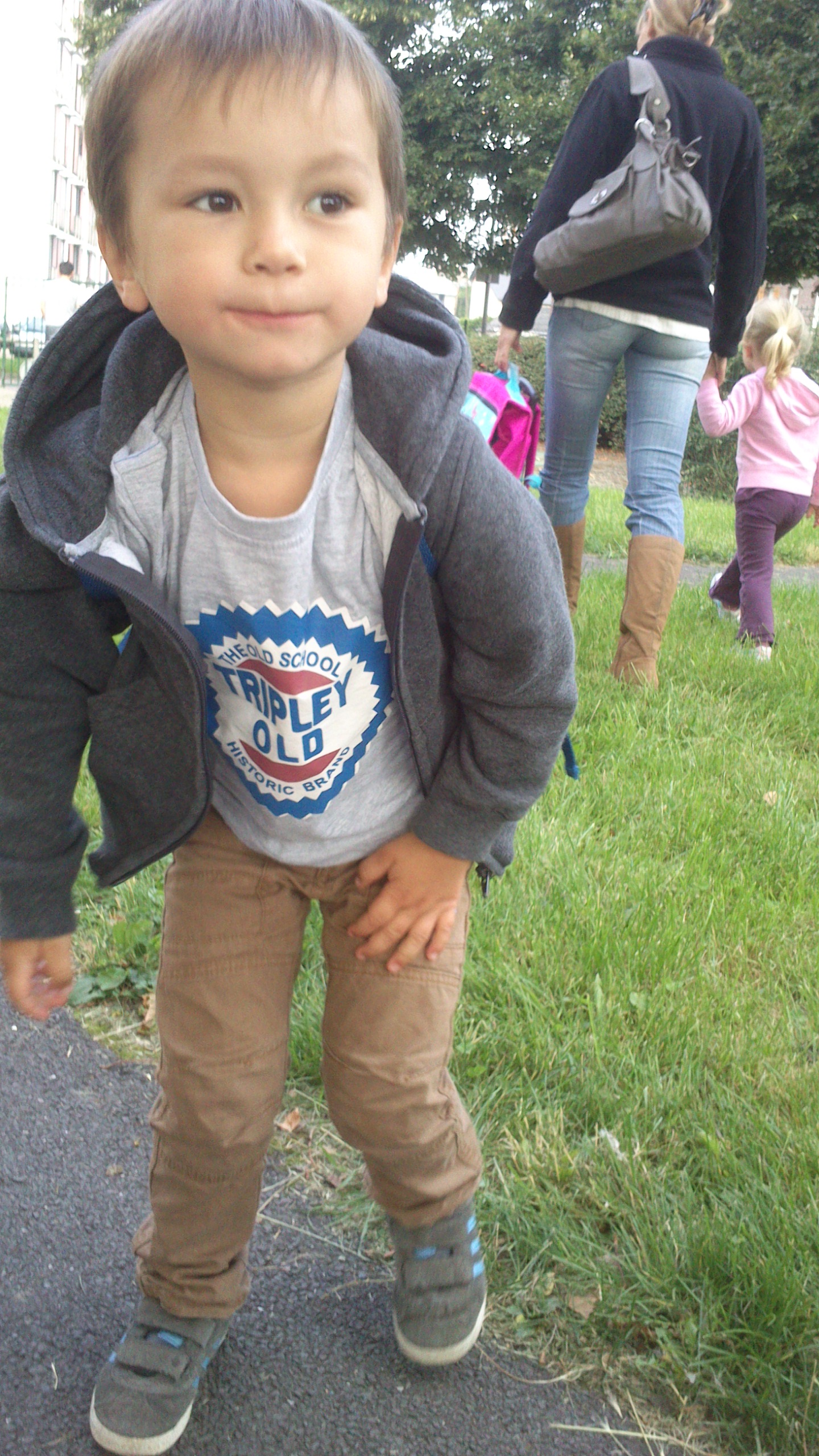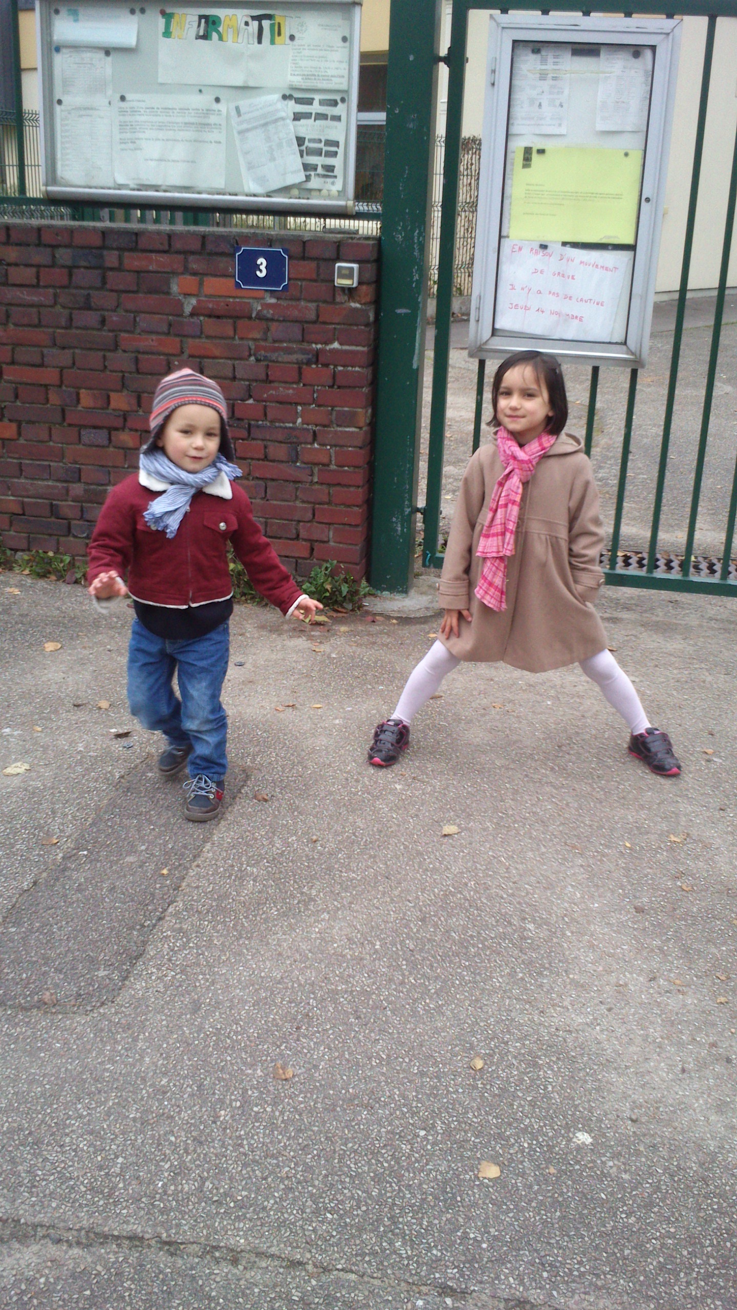 Simon et Lucy devant la grille de l’école
